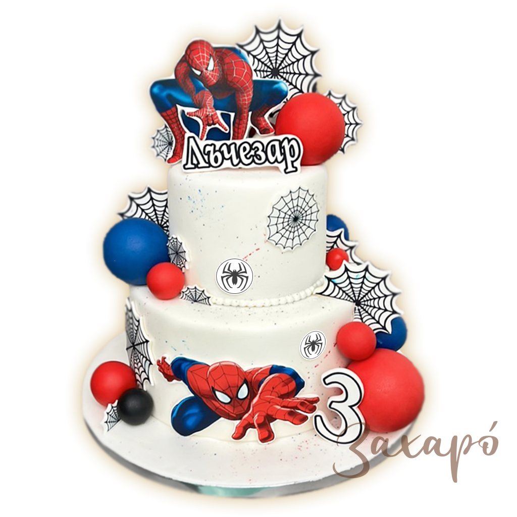 Тортата е с фонданово покритие - мека захарна маса, която й придава перфектен завършен вид.