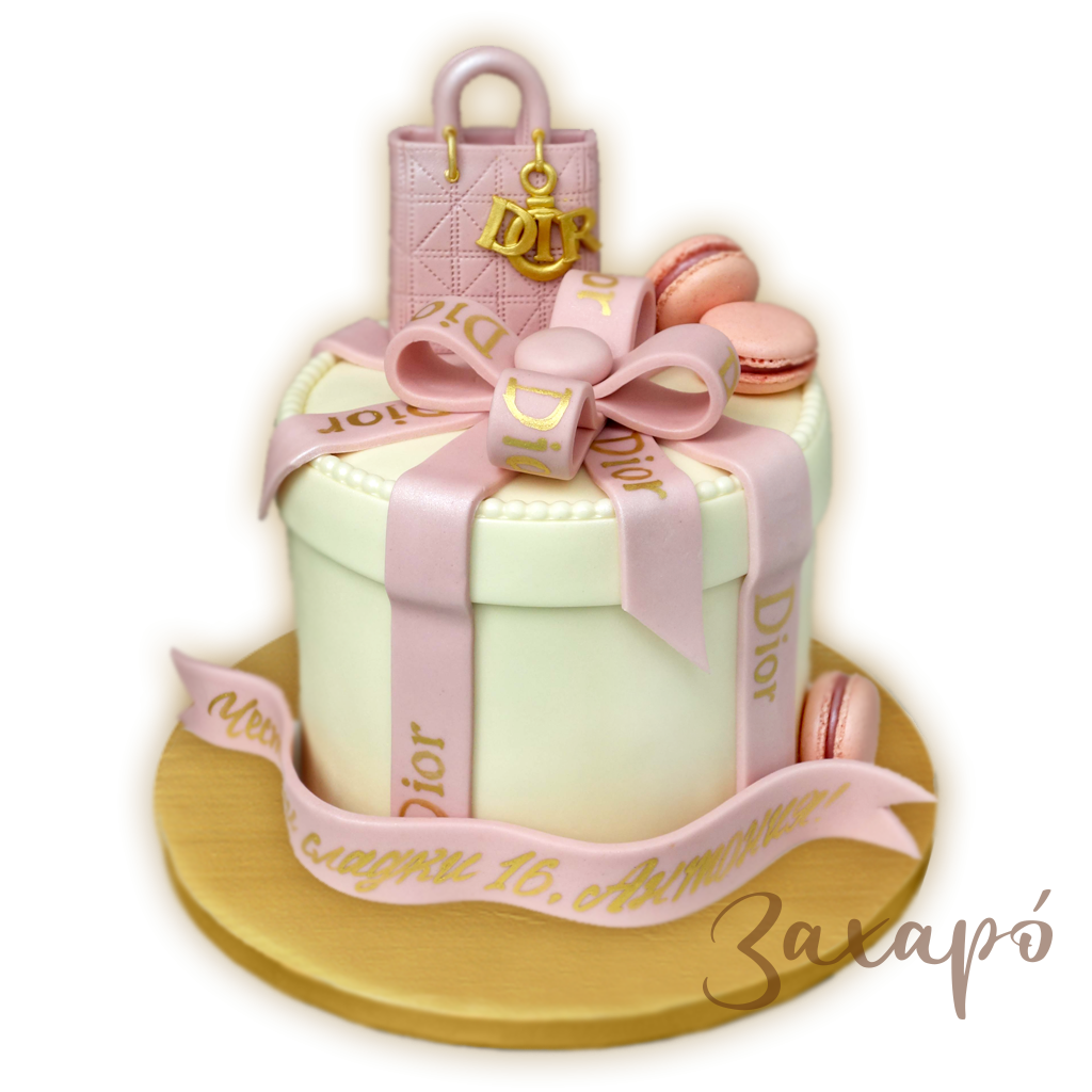 Тортата е с фонданово покритие - мека захарна маса, която й придава перфектен завършен вид.